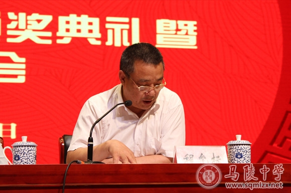 副校长褚俊清宣读了常规管理红旗年级的表彰决定,并进行颁奖。