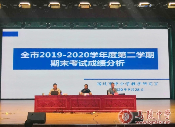 为了总结全市2019—2020学年度第二学期高一、高二年级期末考试成绩,找准全市高中教学中存在的问题和薄弱环节,研究部署新一届高二、高三年级教学及备考工作,推动全市高中教育教学质量再提升。9月28日下午,宿迁市中小学教研室在我校报告厅组织召开了全市2019—2020学年度第二学期高一、高二年级期末考试成绩分析暨教学工作会议。会议由教研室主任王邦柱主持。市政府教育督导室副主任杨晓燕出席了会议。