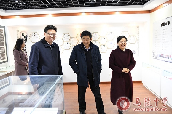 王丽梅向杨九俊详细介绍了我校发展情况、办学特色及办学成绩等。杨九俊实地查看了校园环境,参观了校史馆,并挥笔题字。杨九俊充分肯定了我校取得的办学成绩,勉励我校在原有的四个省级课程基地的基础上,进一步推进省级课程基地创建。