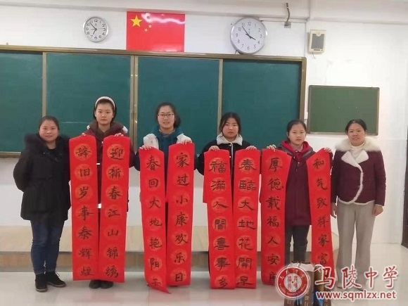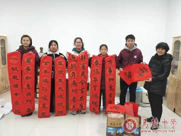 学生们用心用笔将喜庆、平安、祥和传给了马陵中学的每一位师生。