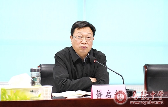 薛启书在讲话中首先对马陵中学近年来取得的办学成绩、西校区建设使用、疫情防控等工作给予了充分的肯定。他指出,学校领导班子、中层教干、普通教职工团结和谐、拼搏奋进、斗志昂扬。学校工作思路清晰、重点突出,呈现出系统性思维、系统性安排、系统性部署、整体推进的特征,各项工作取得了快速的发展。