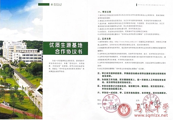 为进一步加强两校之间的交流,我校同华中农业大学签订了“优质生源基地”合作协议书,以便更好服务于学生的成长成才。