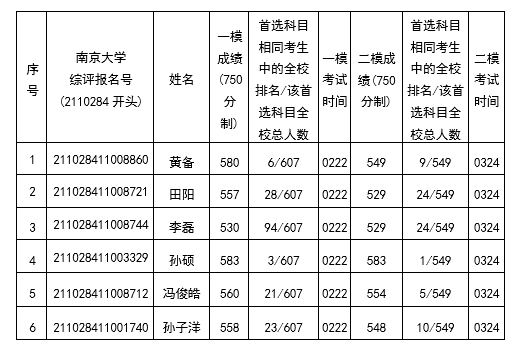 申报南京大学2021年江苏省综合评价黄备等六位同学成绩公示
