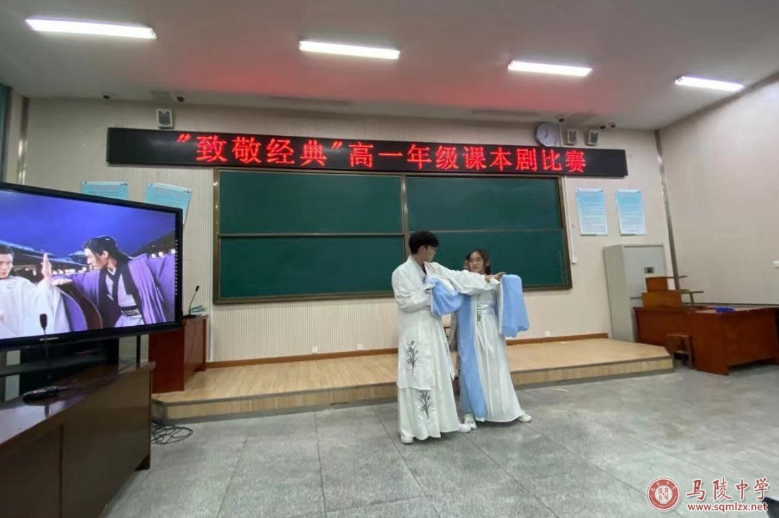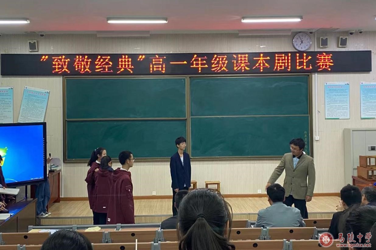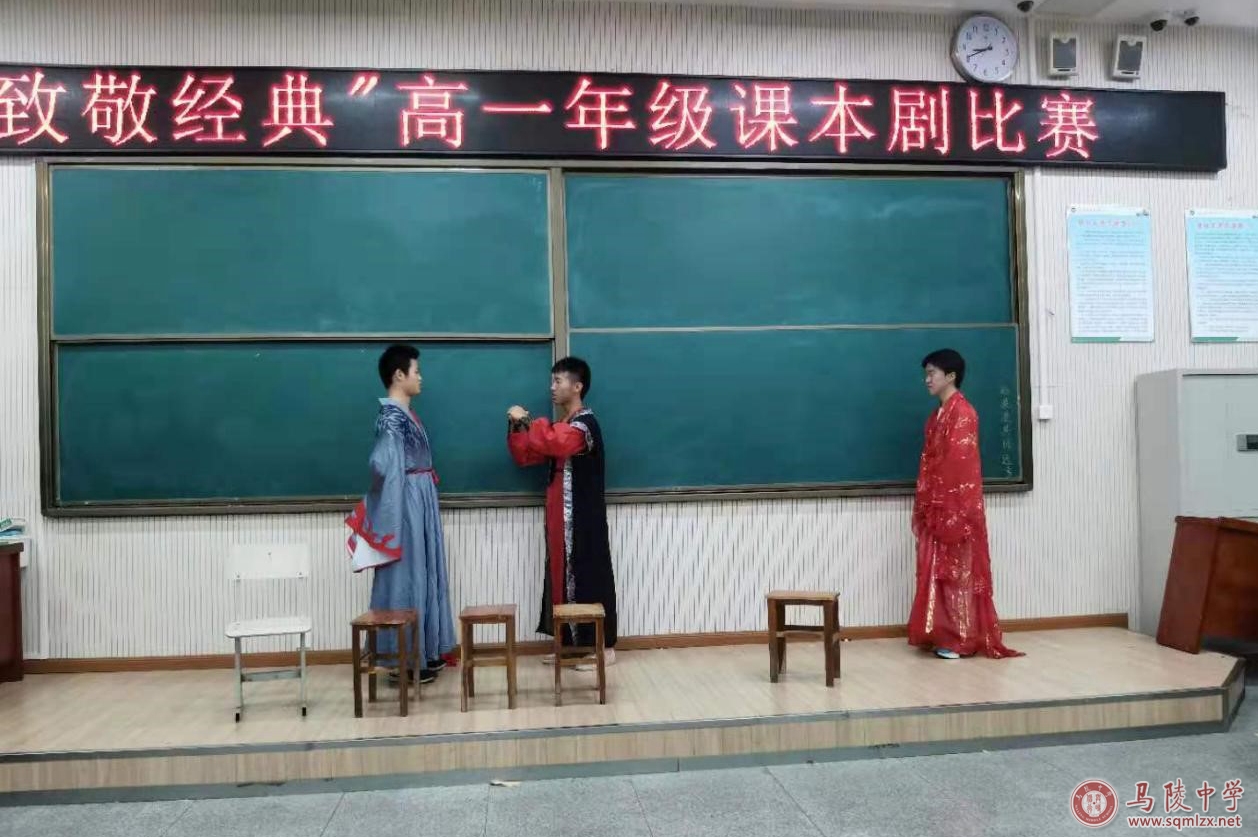 5月14日晚上六点半,马陵中学高一年级在阶梯教室1举办了“致敬经典”高一年级课本剧比赛。天空虽然下着小雨但浇灭不了同学们演绎经典、致敬经典的热情。参加比赛的十八支队伍以极高的热情演绎了《孔乙己》、《威尼斯商人》、《黛玉焚稿》、《雷雨》、《茶馆》等课本里的经典篇目。他们或嬉笑怒骂,或平静温和,或搞笑幽默,把经典名著中的人物刻画得惟妙惟肖,给评委和观众们带来了一场视听盛宴。
