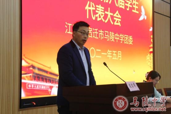 大会第三项议程,由学校团委委员胡誉元做《马陵中学第八届学生代表大会提案工作报告》。