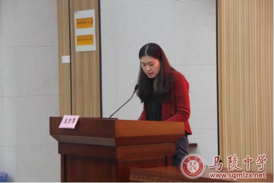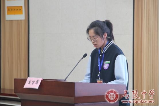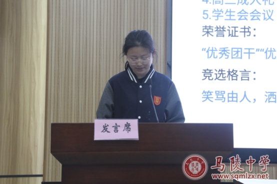 大会第一项议程,现任学生会主席吴沐梓同学做《马陵中学学生会工作报告》。