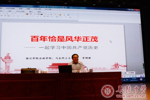 今年是中国共产党100年华诞,100年里,中国共产党带领中华民族实现了从站起来到富起来再到强起来的伟大历程,为了让更多学生了解党的历史,我校于5月27日在报告厅举办“百年恰是风华正茂”学习中国共产党历史讲座。本次讲座由宿迁学院法政学院院长、教授、博士李明建开设。