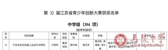江苏省第32届青少年科技创新大赛落下了帷幕,马陵中学机器人社团荣获一等奖。