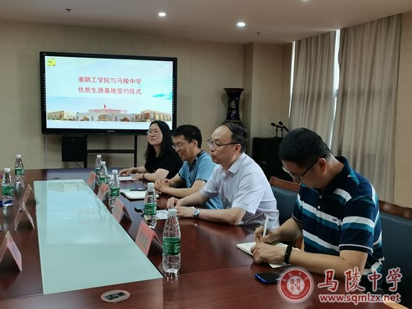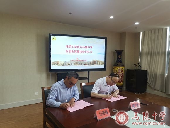 6月16日上午,淮阴工学院与马陵中学优质生源基地签约仪式在马陵中学养正楼七楼举行。淮阴工学院离退休处处长戚耀贵,数理学院院长周广宏、综合办公室主任张庆海及数理学院张莉博士,马陵中学副校长汪德强,课程中心主任刘琳,高三年级主任李明、胡博参加了签约仪式。
