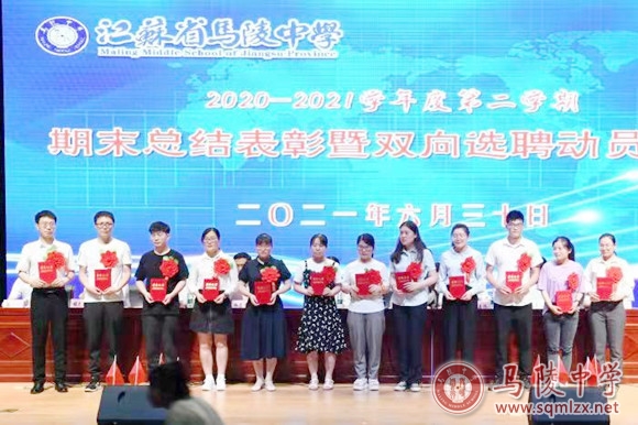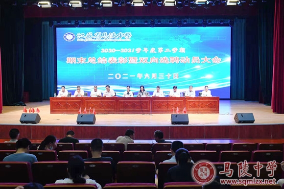 6月30日,马陵中学召开2020-2021学年度第二学期期末总结表彰暨双向选聘动员大会,全体教职工参加了会议。会议由校党委书记张美华主持。