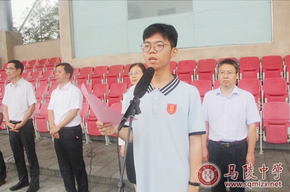 高三学生代表张嘉恒表态发言,他呼吁全体同学,要攒足气、铆足劲,咬定目标,奋勇前行,努力成为堪当民族复兴重任的时代新人。